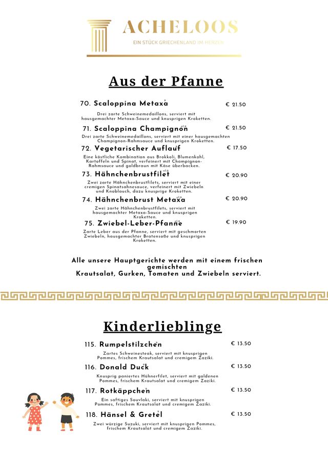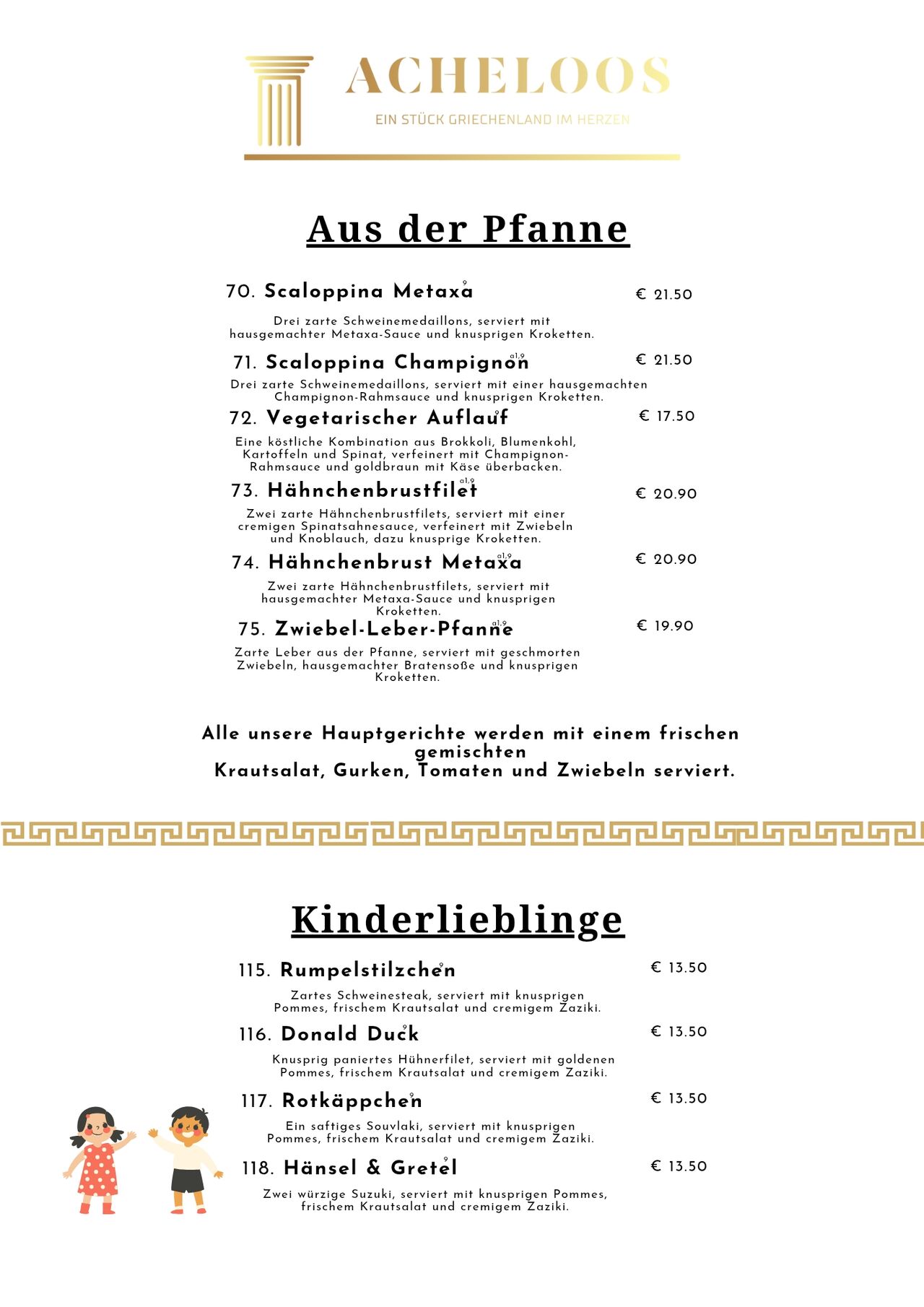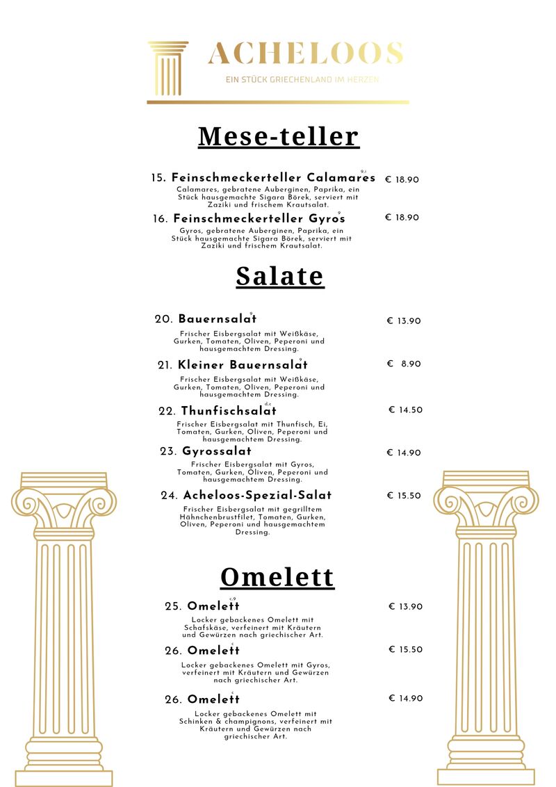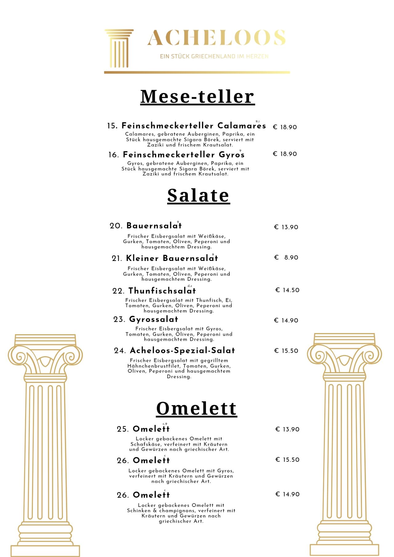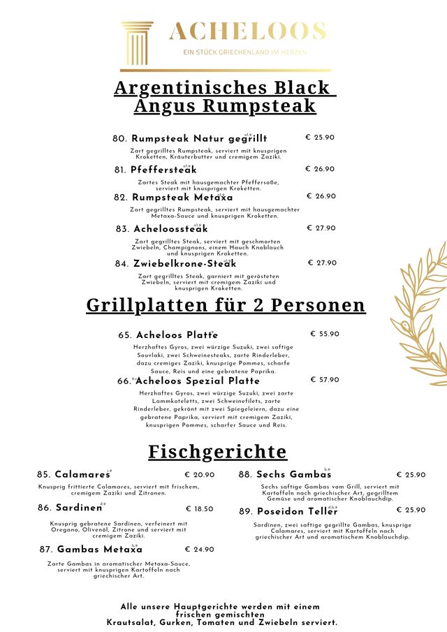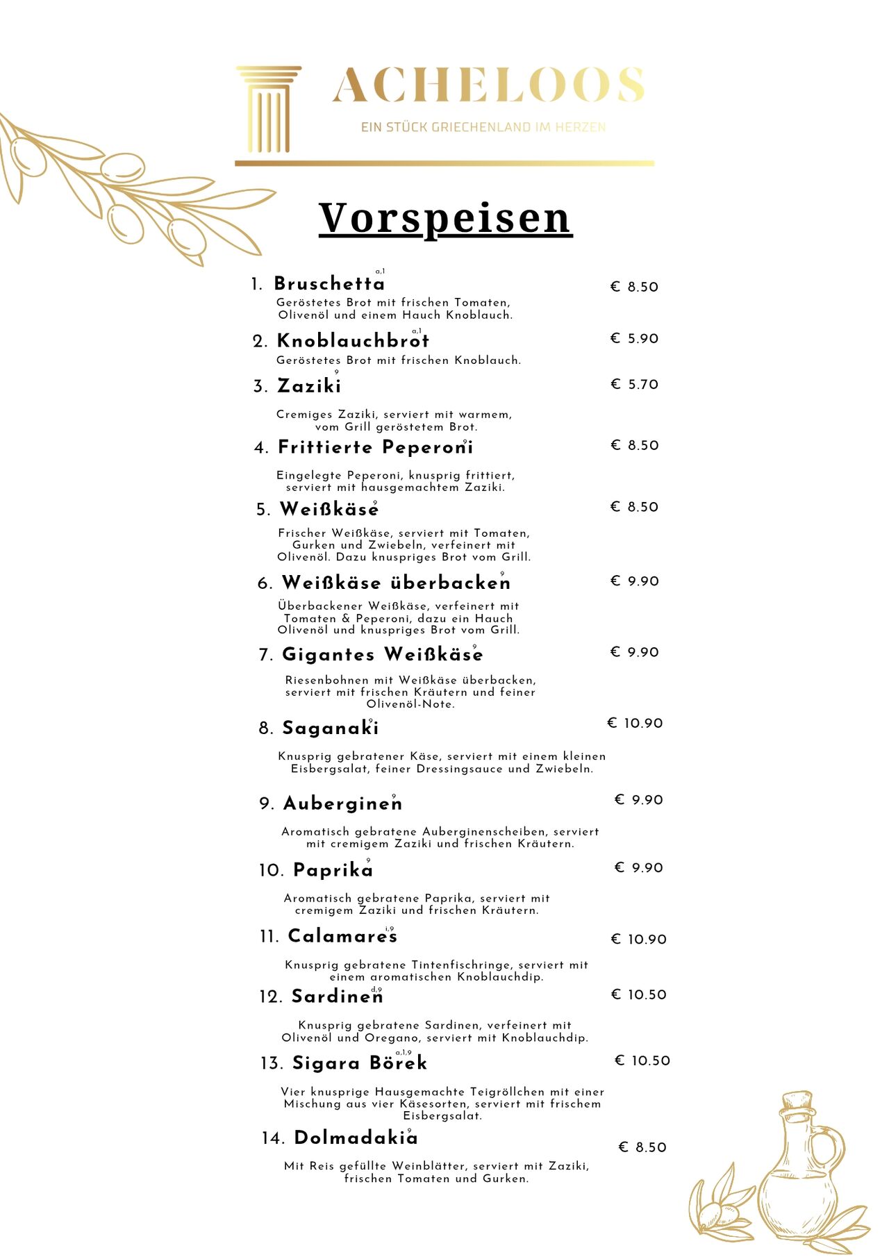 Herzlich Willkommen im Restaurant ‚‚ ACHELOOS “. Wir freuen uns, Sie als Gast in unserem Hause begrüßen zu dürfen.